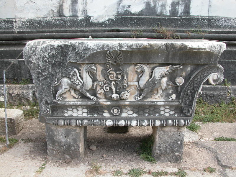 | Description: | Gryphon design on a pilaster capital from the temple of Apollo at Didyma |